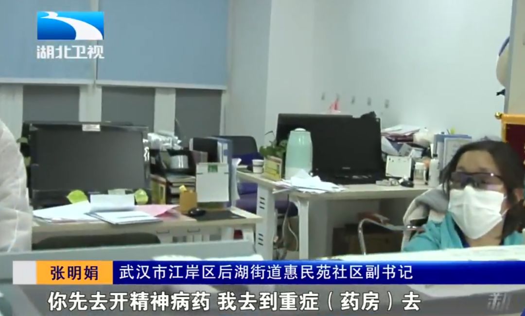 镜头下,武汉多闻社区的社区办公室门口排起了长队,一名居民正在向社区负责人田书记激动地抱怨: