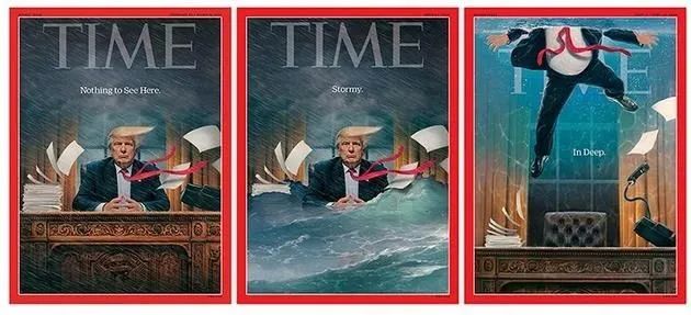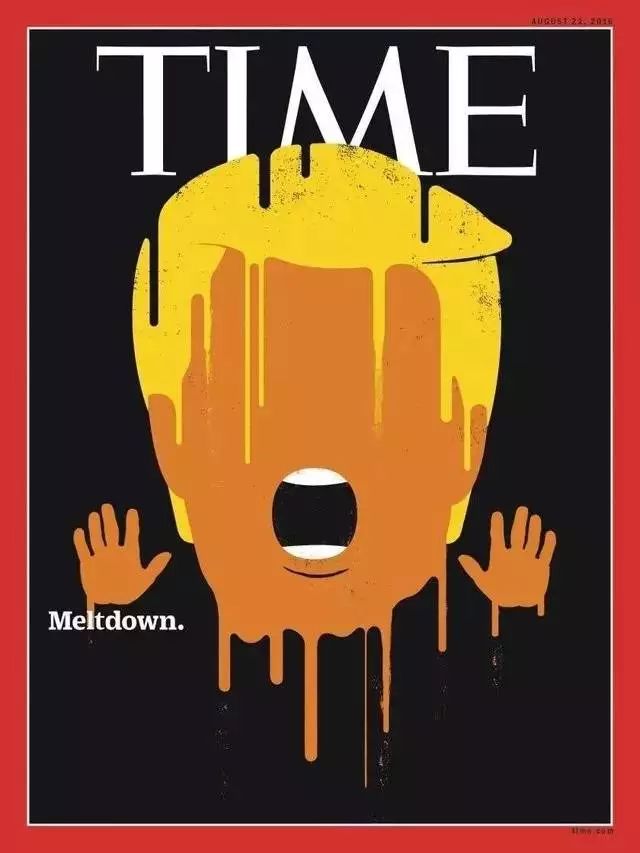 用川普当封面最多的,可能要数《时代周刊》了,从特朗普竞选开始至今,《时代周刊》用川普玩出了百变的封面,这张封面里川普像一个面糊糊的口香糖,而后,这个口香糖又化掉了。