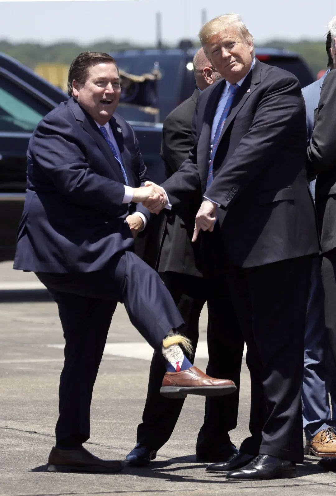 川普长筒袜还带着梳子来梳理川普的毛发。
