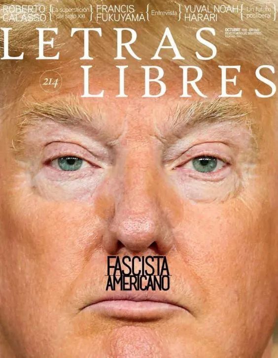 文学杂志《Letras Libres》在使用川普的IP时,直接使用了一张川普的特写,你在看着川普的时候感觉川普也在看着你,给人留下无尽的幻想空间。