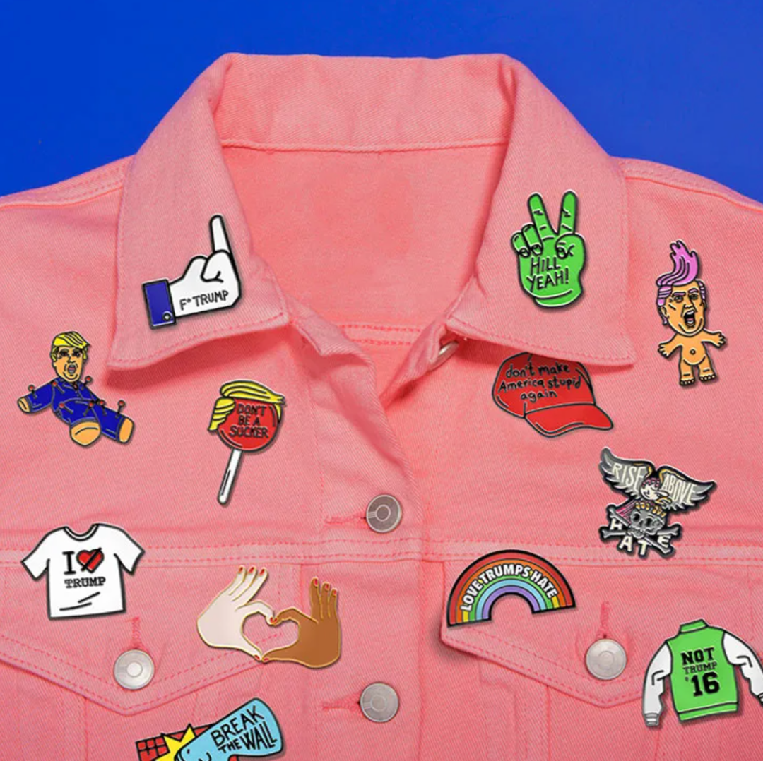 设计师Sagmeister&Walsh还做了川普系列胸针,用来表达对特朗普的抗议。