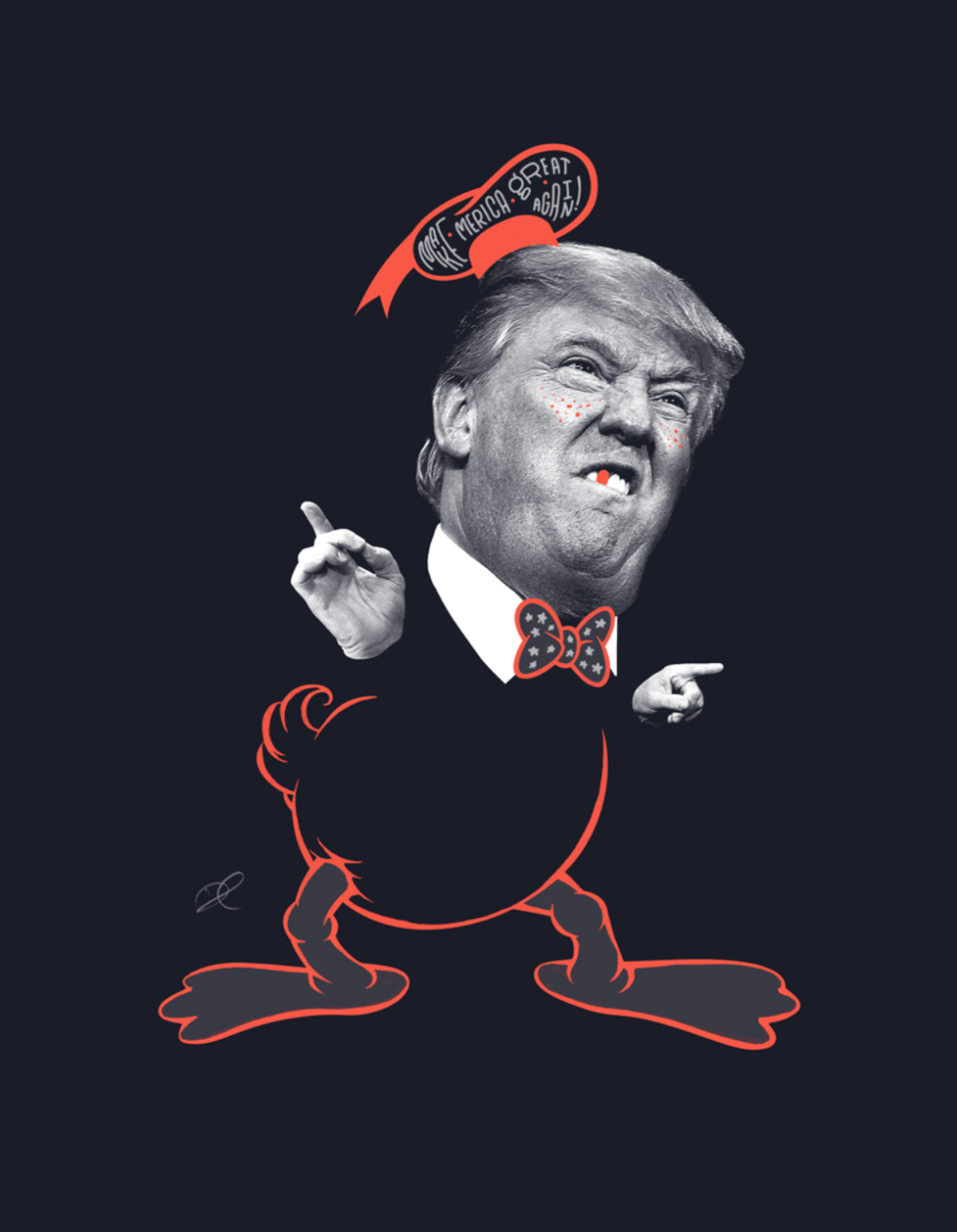 更有恶魔川普和唐老鸭川普。无论什么形象,川普的嘴巴永远是设计的亮点。