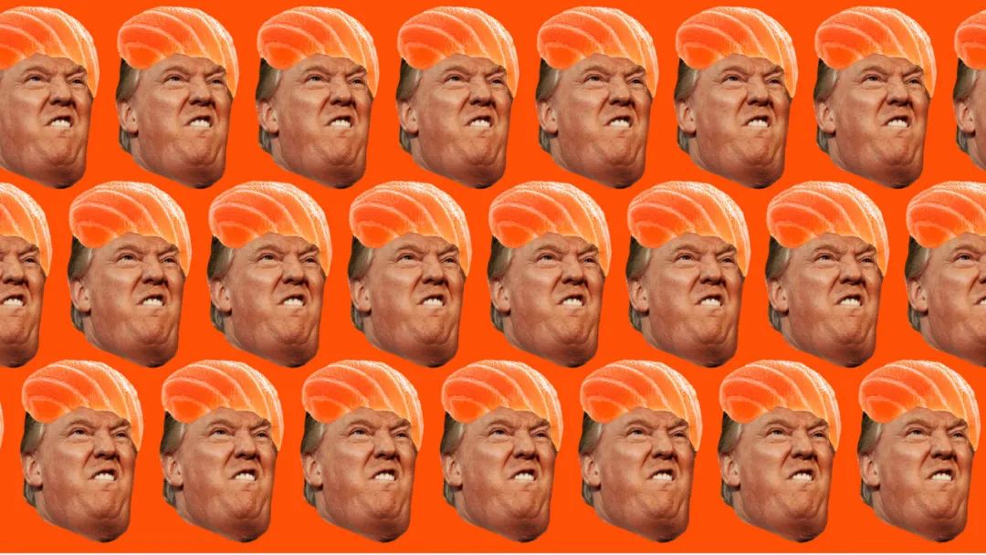 设计师Ryan Haskins为寿司店设计的川普系列,头顶三文鱼的川普看起来特别愤怒。