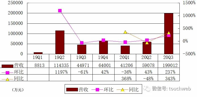 2020年第三季度汽车销售收入为18.98亿元(2.80亿美元),较2019年同期的3.99亿元增长376.0%,较2020年第二季度的5.41亿元增长250.8%。