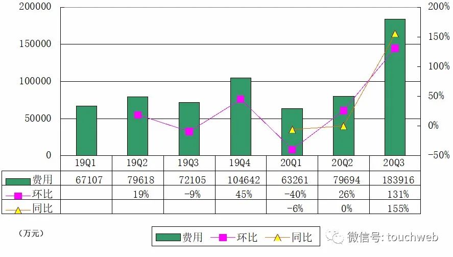 小鹏汽车2020年第三季度费用为18.39亿元,同比增长155%,其中,6.35亿元用于研发,市场销售与管理等费用为12亿元。