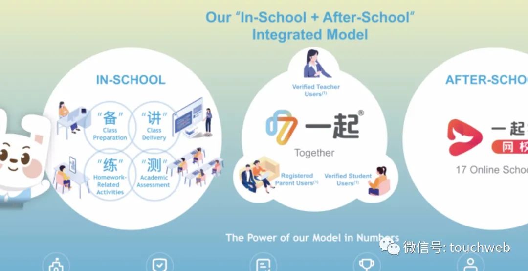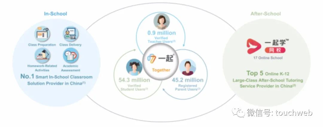 一起教育科技旗下品牌一起作业为全国超过90万教师、5430万学生、4520万家长提供教学、学习和评测应用,目前服务全国7万所学校,覆盖全国三分之一的公立中小学。