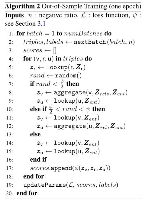 对于样本外推理( out-of-sample reasoning),人们需要对训练时看不到的实体进行预测,许多以前的工作都考虑属性图。然而,对于非属性图的样本外推理,并没有得到充分的研究。