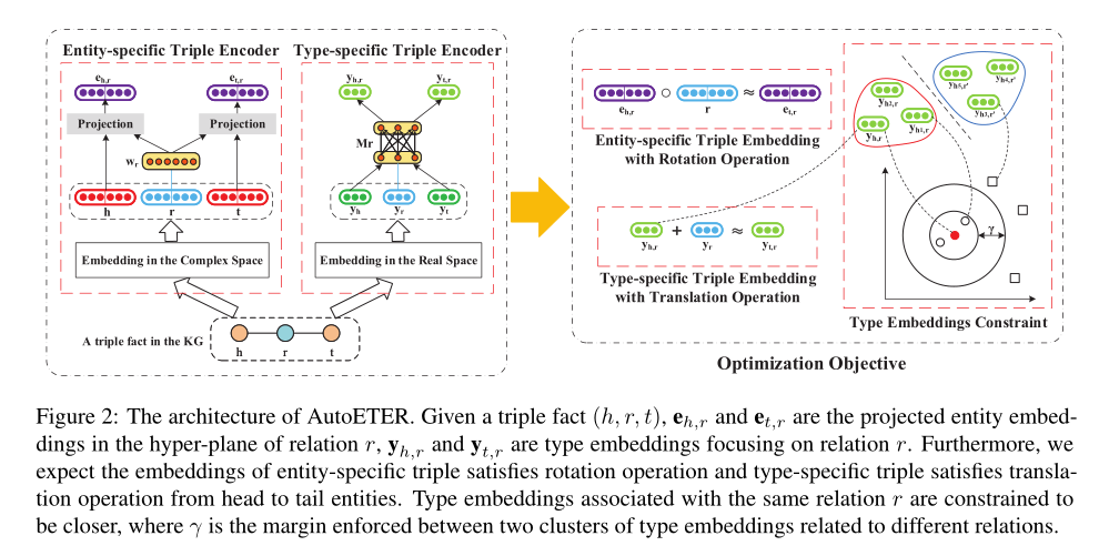 为了探索任何KG的类型信息,我们提出了一种新的KGE框架自动实体类型表示(AutoETER),通过将每个关系看作是两个实体类型之间的转换(translation)操作来学习每个实体的潜在类型嵌入,并利用关系感知映射机制来学习每个实体的潜在类型嵌入。