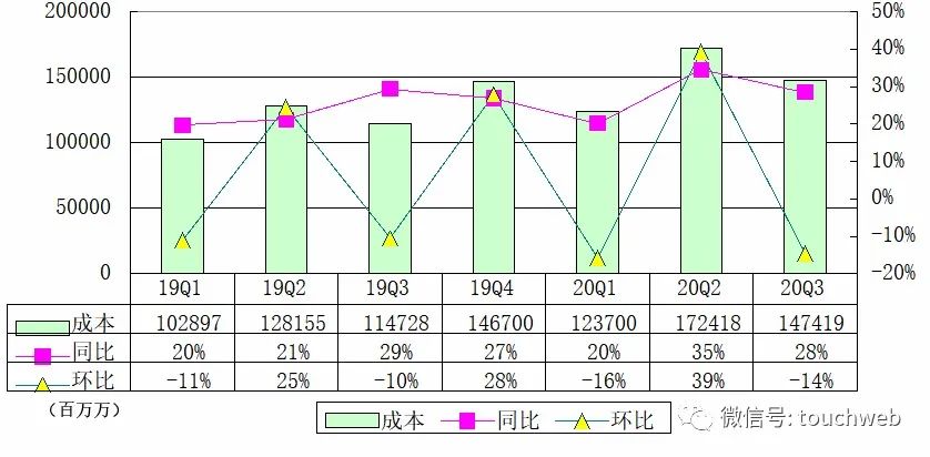 京东第三季度成本为1474亿元,较上年同期的1147亿元增长28%。