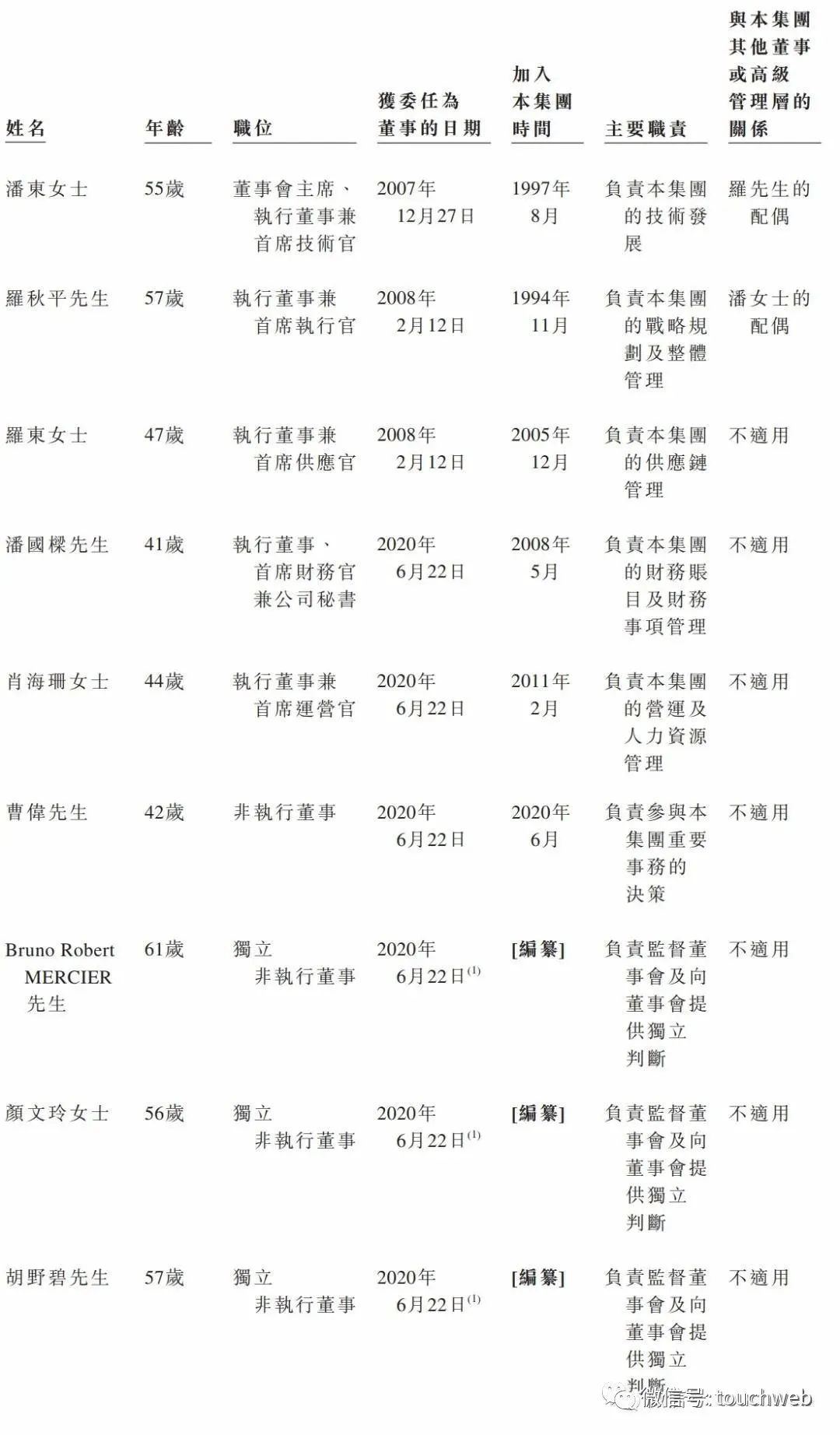 罗东为执行董事、首席供应官;潘国梁为执行董事、CFO;肖海珊为执行董事、COO。