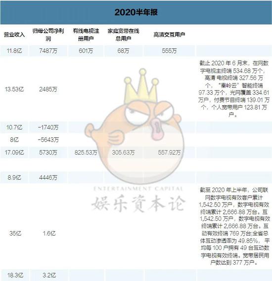 电广传媒、广西广电、湖北广电在2020年上半年分别净亏损'9.09亿、1.33亿元、7419万元,而在上年同期,这三家上市公司均还位列盈利名单之中。