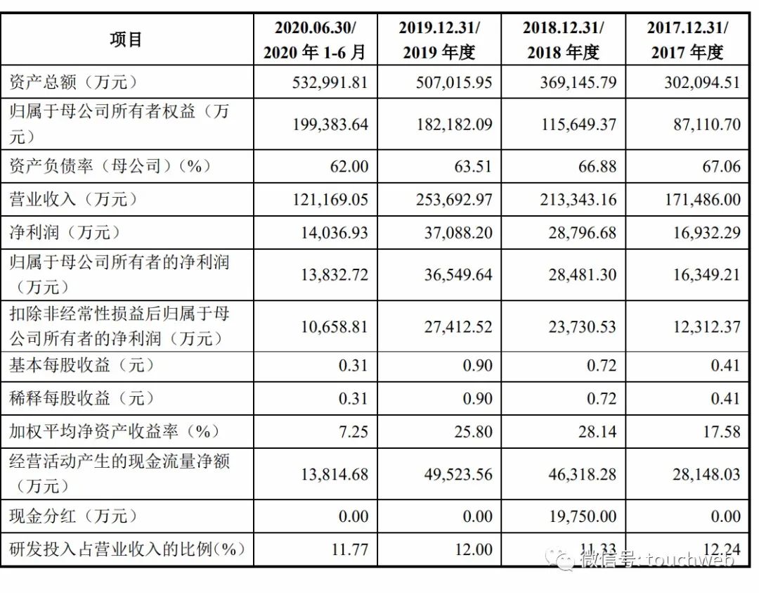 招股书显示,中控技术2017年、2018年、2019年营收分别为17.15亿元、21.33亿元、25.37亿元;净利润分别为1.69亿元、2.88亿元、3.7亿元。