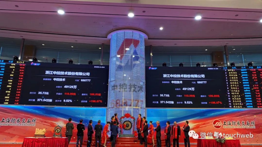 中控技术开盘价为110元,较发行价上涨207.86%;收盘时股价为108.63元,较发行价上涨204.03%;以收盘价计算,中控技术市值533.69亿元。