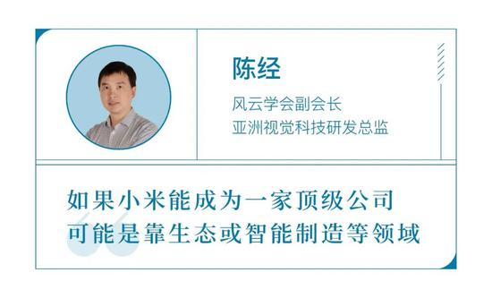 小米的整个智能制造生态比苹果生态要宽泛得多。小米公司具有研发和智造的文化基因,能把各种产品的制造成本压得较低,把性价比做得较高,这个基因有助于其在未来成为一家顶级公司。