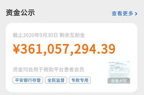 水滴互助官方数据显示,截至2020年11月27日,平台已救助会员15896人,划拨救助款17.52亿元,截至9月30日的剩余互助金为3.61亿元。