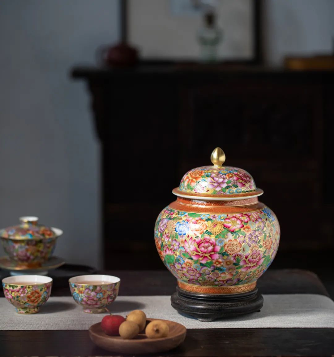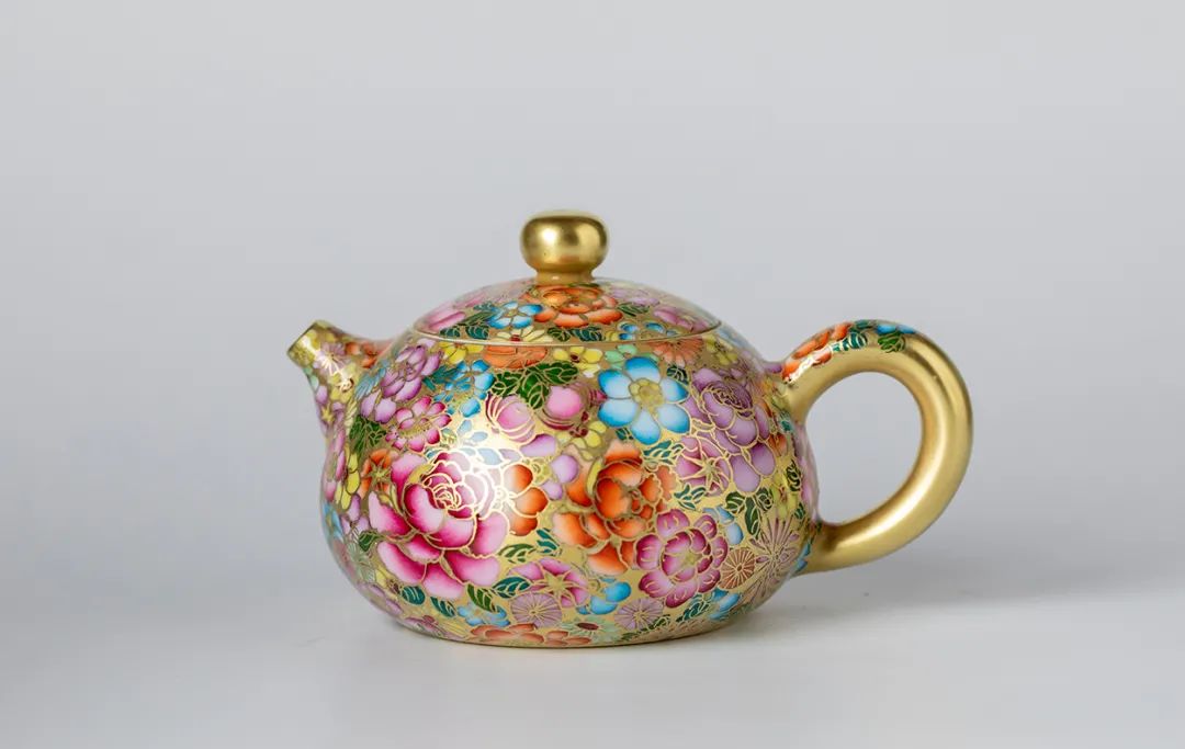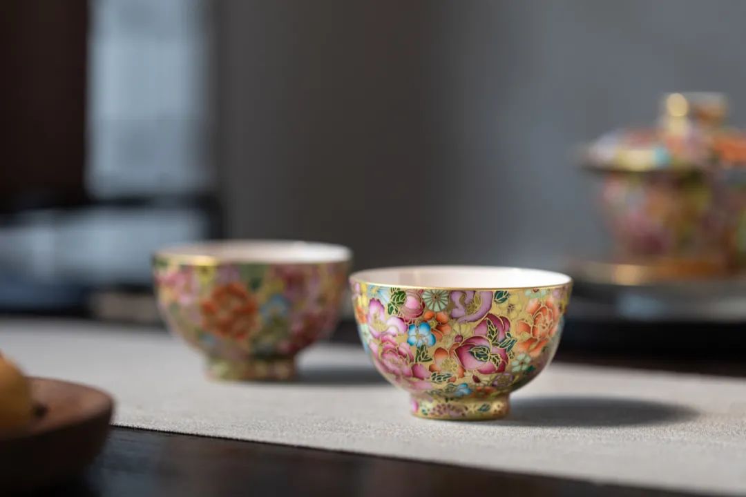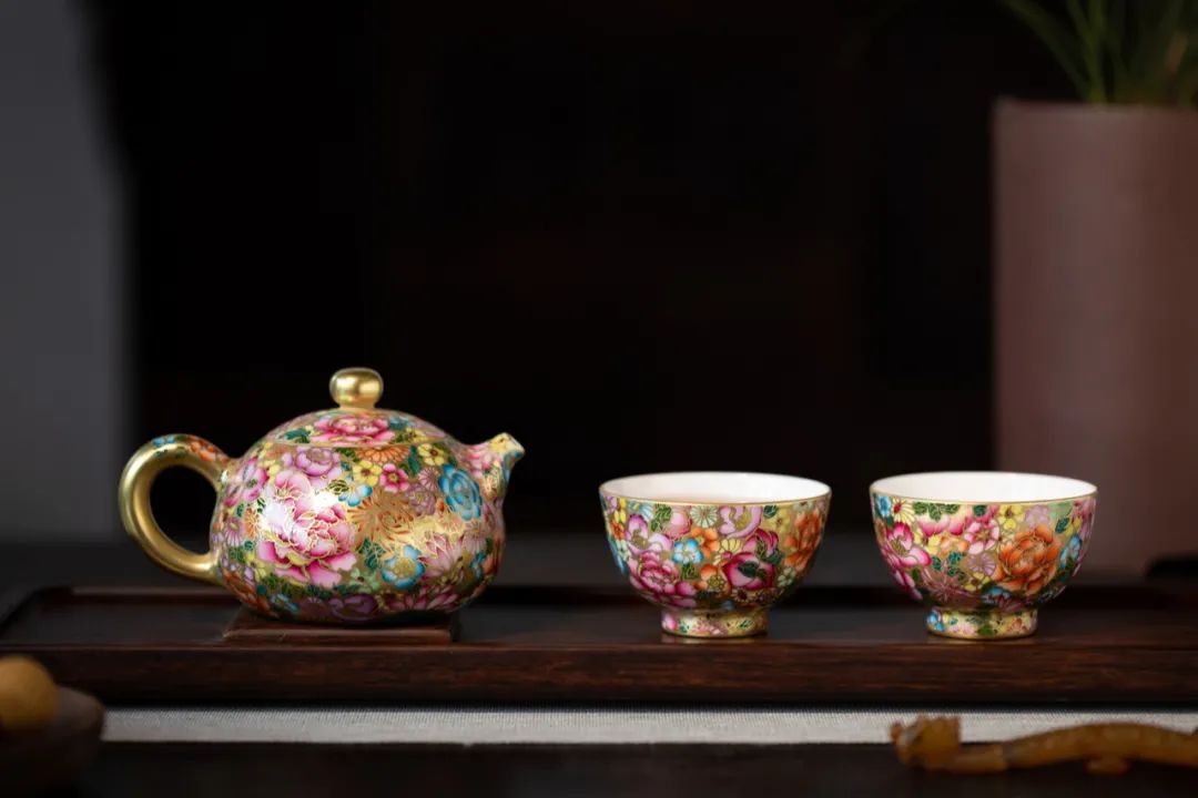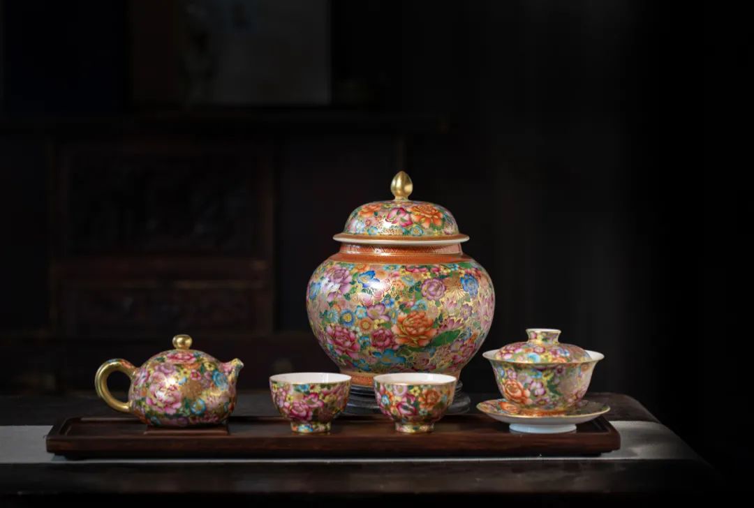 此次众筹的茶器系列皆延续了传统珐琅彩技艺,以“万花不露地”的绮丽华贵,尽显御金宝相,尊贵气质。