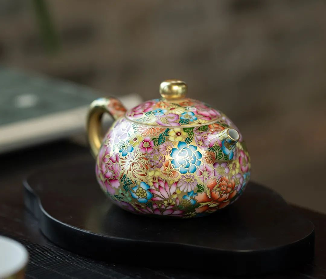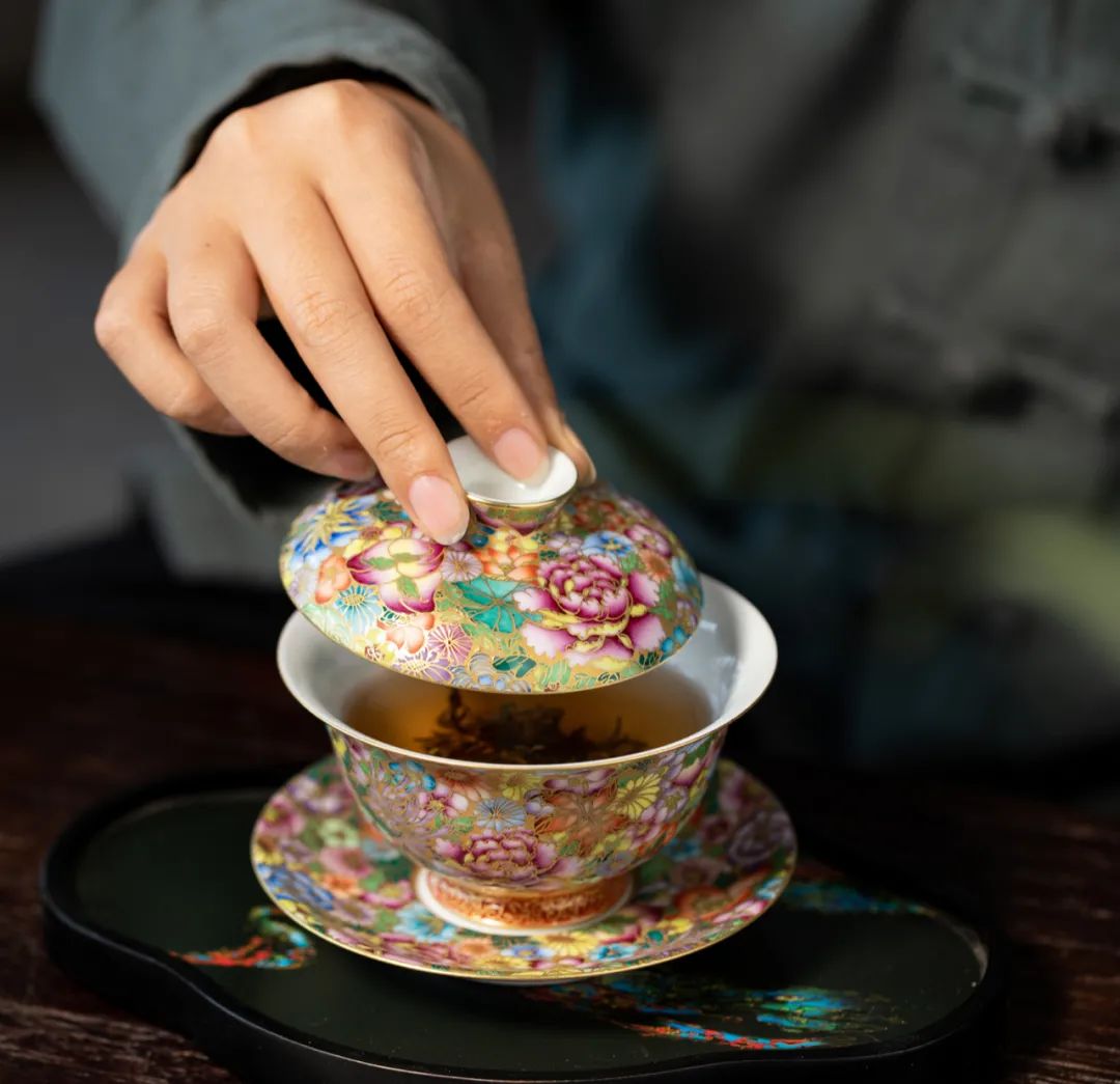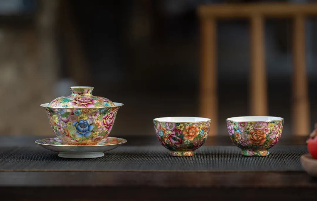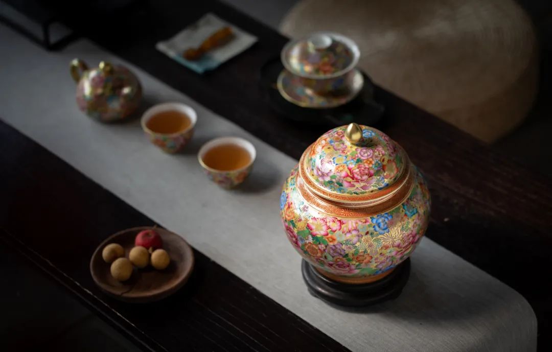 此次众筹的茶器系列皆延续了传统珐琅彩技艺,以“万花不露地”的绮丽华贵,尽显御金宝相,尊贵气质。