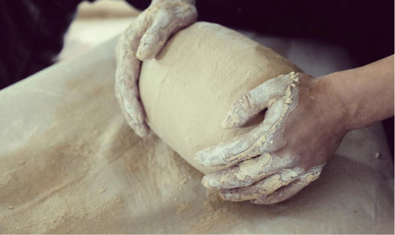 | 手工练泥先是用双手反复搓揉,或用脚踩踏,把泥团中的空气挤压出来,水和泥混合更加均匀,如此才能烧出细密坚硬的陶瓷。