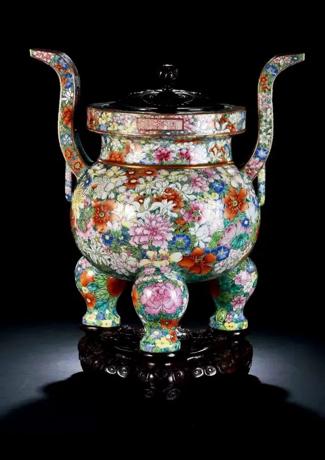 | 万花不落地朝冠耳三足炉近年来,乾隆瓷价格飙升,拍卖会上屡创新高。