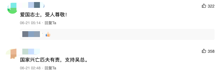 在吴雄昂被解雇的报道出来以后,许多中国网友也都表达了对吴雄昂的支持态度。