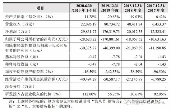 云从科技2017年、2018年、2019年和2020年1-6月,公司研发费用分别为5940.65万元、1.48亿元、4.54亿元和2.47亿元,占各期营业收入的比例分别为92.06%、30.61%、56.25%和112.00%,研发投入占比高。由于公司业务仍处于快速扩张期,研发费用将会持续增加。