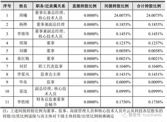 此外,周曦还担任发行人董事长兼总经理,系云从科技实际控制人。当前,周曦直接和间接持股为24.0075%。