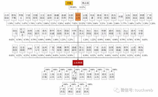 IPO前,常州云从持股为23.32%,佳都科技持股为7.82%,云逸众谋持股为7.55%,鼎盛信和持股为4.02%,刘益谦持股为3.86%;