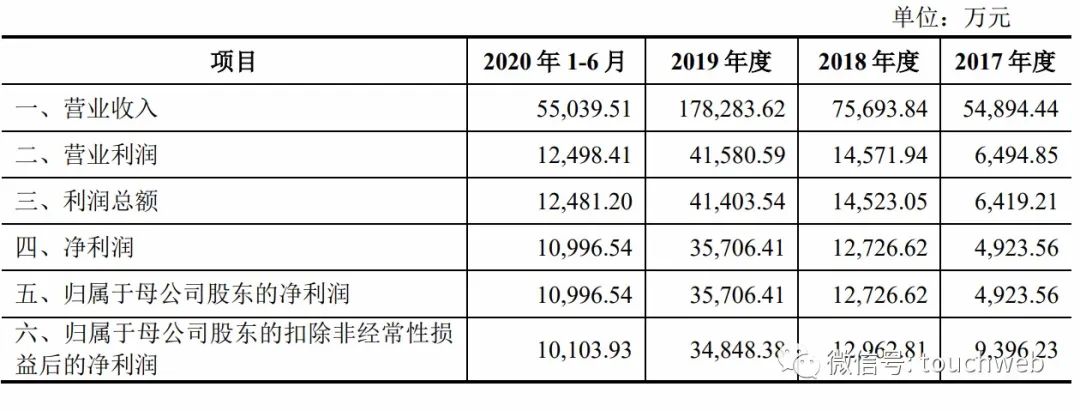 兆威机电2017年、2018年、2019年营收分别为5.49亿元、7.57亿元、17.83亿元;兆威机电2020年上半年营收为5.5亿元。