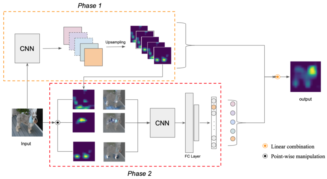 阶段二通过对于特征图上采样,然后将其作为掩码信息,重新得到模型对于图片在目标类别上的响应值。