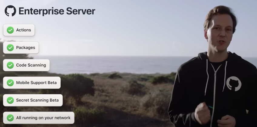 3.0版本通过 GitHub Actions 和 Packages 为平台带来了内置的 CI/CD 和自动化功能。此外,企业服务器客户现在可以自动化 Advanced Security,包括代码和秘密扫描到他们的工作流中,作为服务器部署的一部分,像依赖审查这样的特性有助于确保维护者和公司不会将漏洞导入他们的代码库。