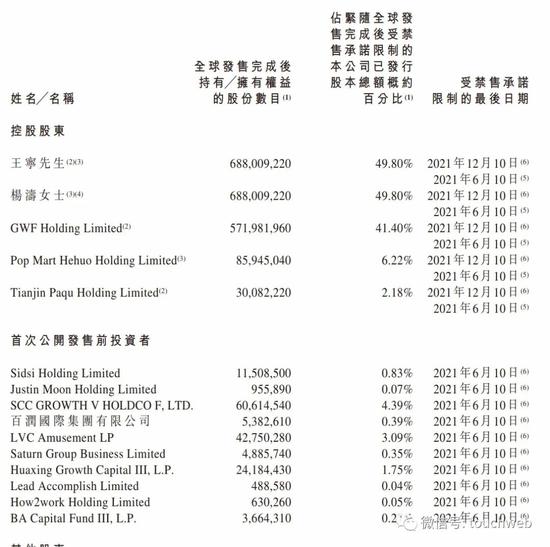 PopMartHehuoHolding为一家于英属维京群岛注册成立的获豁免投资控股公司,王宁持股43.18%、杨涛持股15.11%、司德持股0.92%、刘冉持股9.23%,此外,公司12名其他僱员共同拥有。