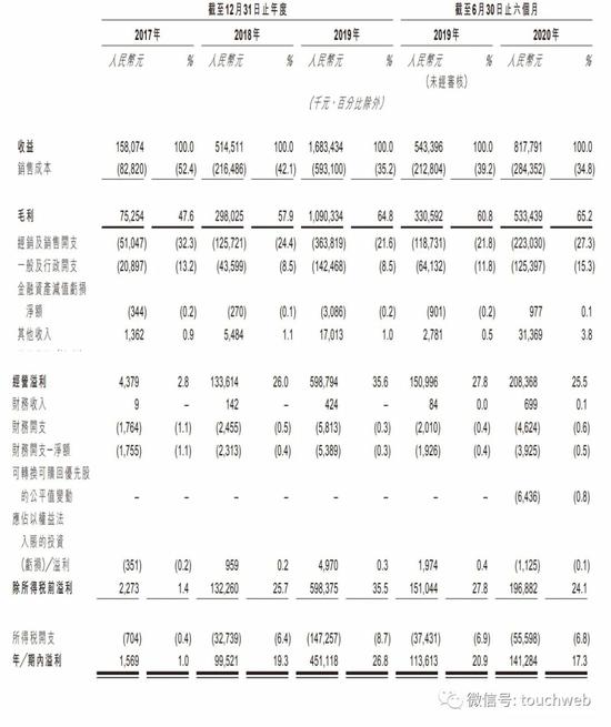 招股书显示,泡泡玛特2017年、2018年、2019年营收分别为1.58亿、5.14亿、16.83亿;2020年上半年营收为8.18亿元,上年同期为5.4亿元。