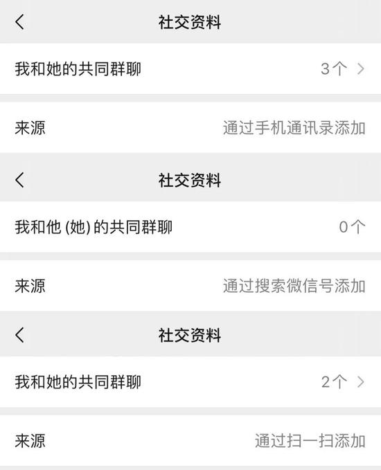 微信的产品细节中还彰显了其是一个“可追踪的人际关系网”这一产品理念。不同于QQ,通过搜索昵称或群名就能检索到大量陌生用户或QQ群,微信的加好友存在一定的门槛,别人是如何加你为好友的,将永远显示在这个人的资料栏下方,是通过手机号、名片、微信群还是二维码等方式,都是有迹可循的。