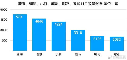 市值疯涨的理想、蔚来、小鹏真的站稳格局之战了吗?以12月2日发布的造车新势力11月销量榜单看貌似如此:蔚来以5291辆依旧维系榜首,理想以4646辆屈居第二,小鹏以4224辆紧跟其后,威马销量则为3018辆。