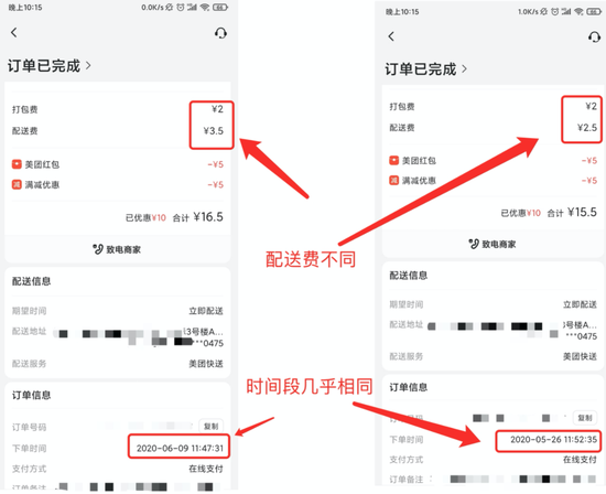 发现此前笔者经常点外卖的一家餐馆,在早些时候点外卖时配送费为2.5元,但随着在这家餐馆点外卖的次数增多,配送费则变为3.5元,而这两次点餐的餐饮完全相同,点餐时间段也相差无几,这似乎也证明了美团外卖存在“大数据杀熟”。