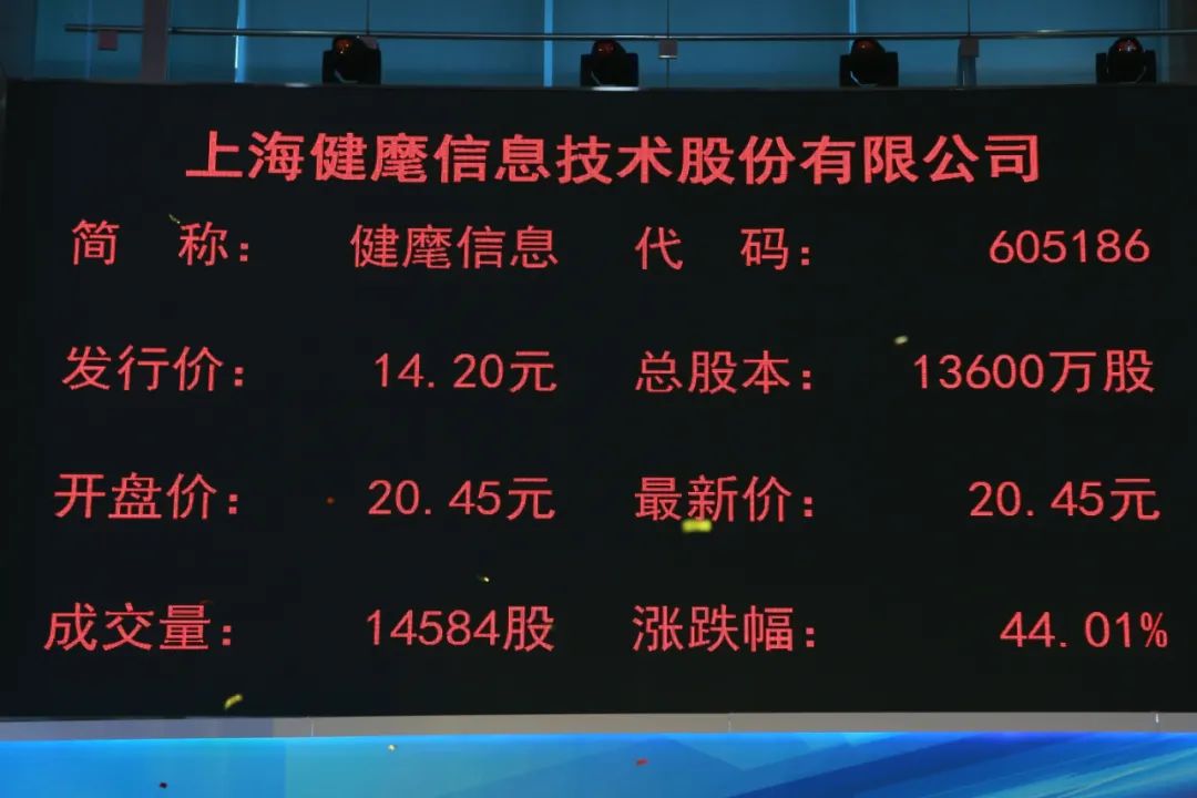 药品及耗材智能化管理设备供应商上海健麾信息技术股份有限公司(证券代码:605186,简称:“健麾信息”)昨日在上交所上市。