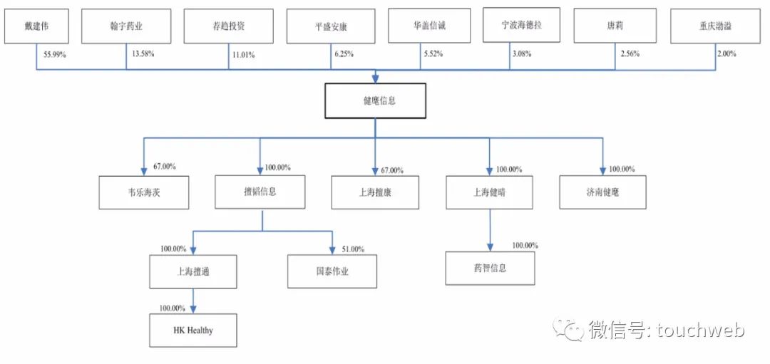 IPO后,戴建伟直接持股为42%,翰宇药业持股为10.19%,荐趋投资持股为8.26%,平盛安康持股为4.69%,华盖信诚持股为4.14%,宁波海德拉持股为2.31%,唐莉持股为1.92%,重庆渤溢持股为1.50%。
