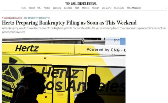 Hertz这种全球最大的租车公司之一,受疫情影响不堪重负,在5月申请破产;