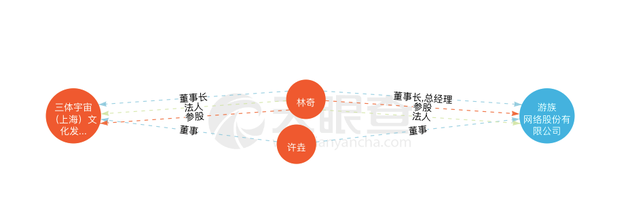 根据天眼查显示,林奇是三体宇宙的投资人,许垚则是游族网络的董事。游族网络表示许垚已经于2019年1月从游族网络辞职,目前并不属于上市公司主体。