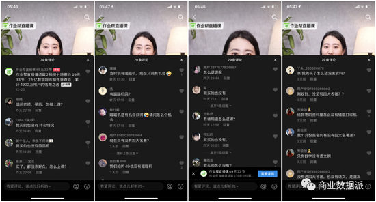但从评论区来看,79条评论中,基本上也都是询问为何没有赠送喵喵机、四大名著等视频中所说的教辅产品、如何退课等问题。