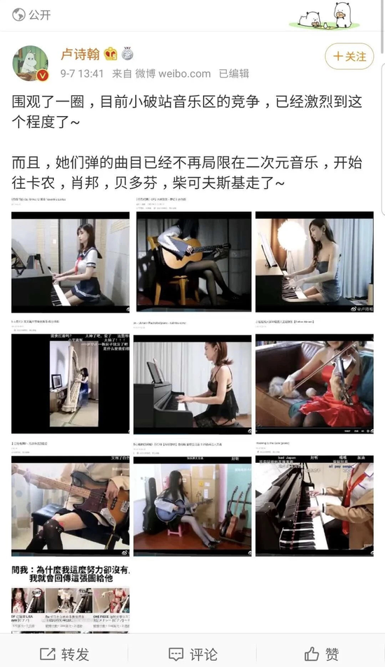 9月,有网友爆料B站音乐分区下的钢琴区一些视频尺度很大,“竞争激烈”。从相关内容来看,这类视频封面擦边,镜头对准弹奏者的胸部和腿部,尺度超过正常范畴和需要。还有ASMR和瑜伽、健身等区域,也都曾出现具有撩拨意味的擦边和软色情等低俗内容。