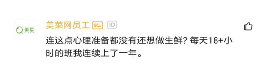 “连这点心理准备都没有还想做生鲜?每天18+小时的班我连续上了一年。”