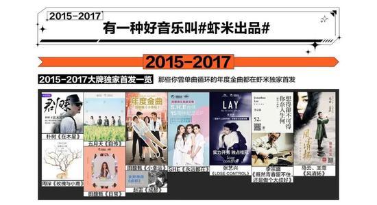 2014年,虾米音乐就启动了国内首个原创音乐扶持项目——寻光计划。2000多名独立音乐人参加评选,最终制作出16张唱片,15部MV,50场演出,累计获得近4亿音乐试听与MV视频播放量。
