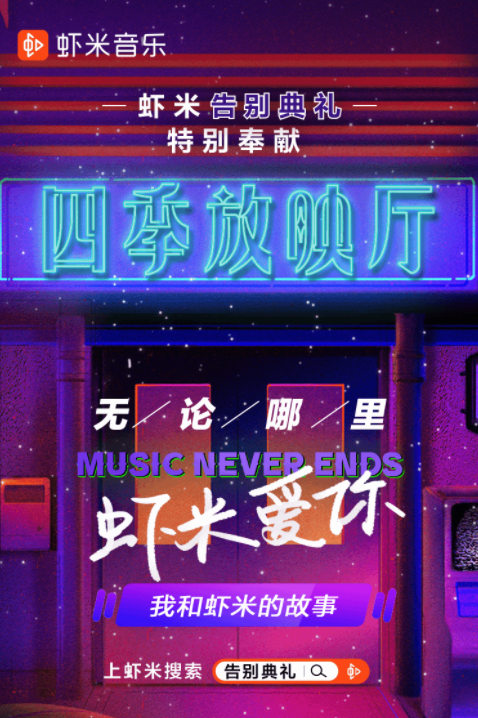 没想到一周后,与他相伴了12年的虾米音乐,还是宣告了离别。为这次离别,虾米音乐发布了“告别典礼”——“四季放映厅”,用户点开就能看到自己的注册时间、在平台上听歌的总时长、循环最多的歌。久违地,虾米音乐登上了热搜,用户在微博发布着自己的报告截图,回忆着自己与虾米音乐的点点滴滴。