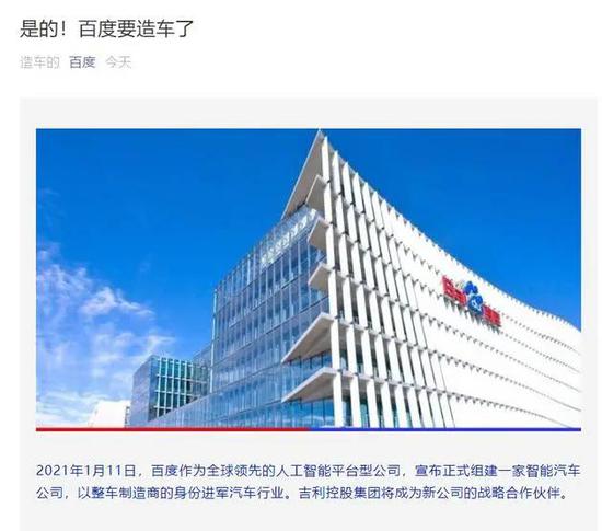 无论是车企,还是互联网企业,谁都无法放弃智能汽车这个潜力无限的市场空间。就在今天,百度宣布将进军汽车行业,将组建一家智能汽车公司,吉利控股集团将成为新公司的战略合作伙伴。