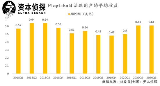 衡量一个游戏公司的赚钱能力有个关键指标:ARPDAU(日活跃用户的平均收益)。所以,以此来看Playtika的话,会发现它确实大大受益于疫情。2019年Playtika的ARPDAU从0.51美元下滑到了0.48美元,直至疫情扩散后增长到0.61美元,但并未超过2018年的巅峰值0.64美元。