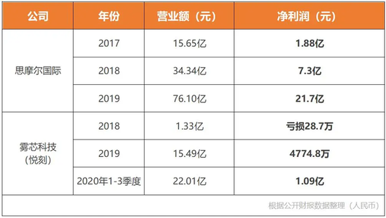 招股书显示,悦刻2018年、2019年和2020年前三季度,营收分别为1.33亿元、15.49亿元和22.01亿元;净利润分别为-28.7万元、4774.8万元和1.09亿元。增长惊人。