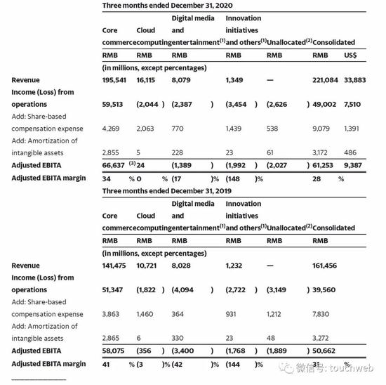 阿里大文娱营收为80.79亿元,上年同期为80.28亿元;运营亏损为23.87亿元,上年同期为运营亏损40.94亿元;阿里大文娱2020年第四季度经调整EBITA为-13.89亿元,上年同期为-34亿元。