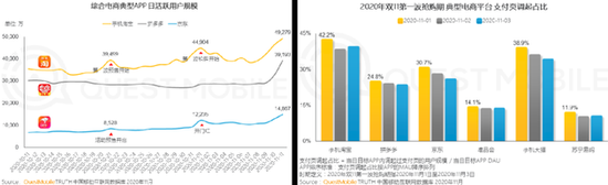 而抢购期内,手机淘宝和手机天猫的支付页调起占比,高于京东、拼多多App,用户留在平台产生消费行为的意愿更为明显。