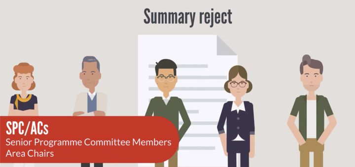 每位资深审稿人有10天的时间来评判大约20份提交的论文,然后由SACs(高级区域主席)检查困难或边缘的案例。最后,大多数提交的作品至少收到9份Summary Reject评审 (104份提交,8份评审),有些甚至收到16份评审。
